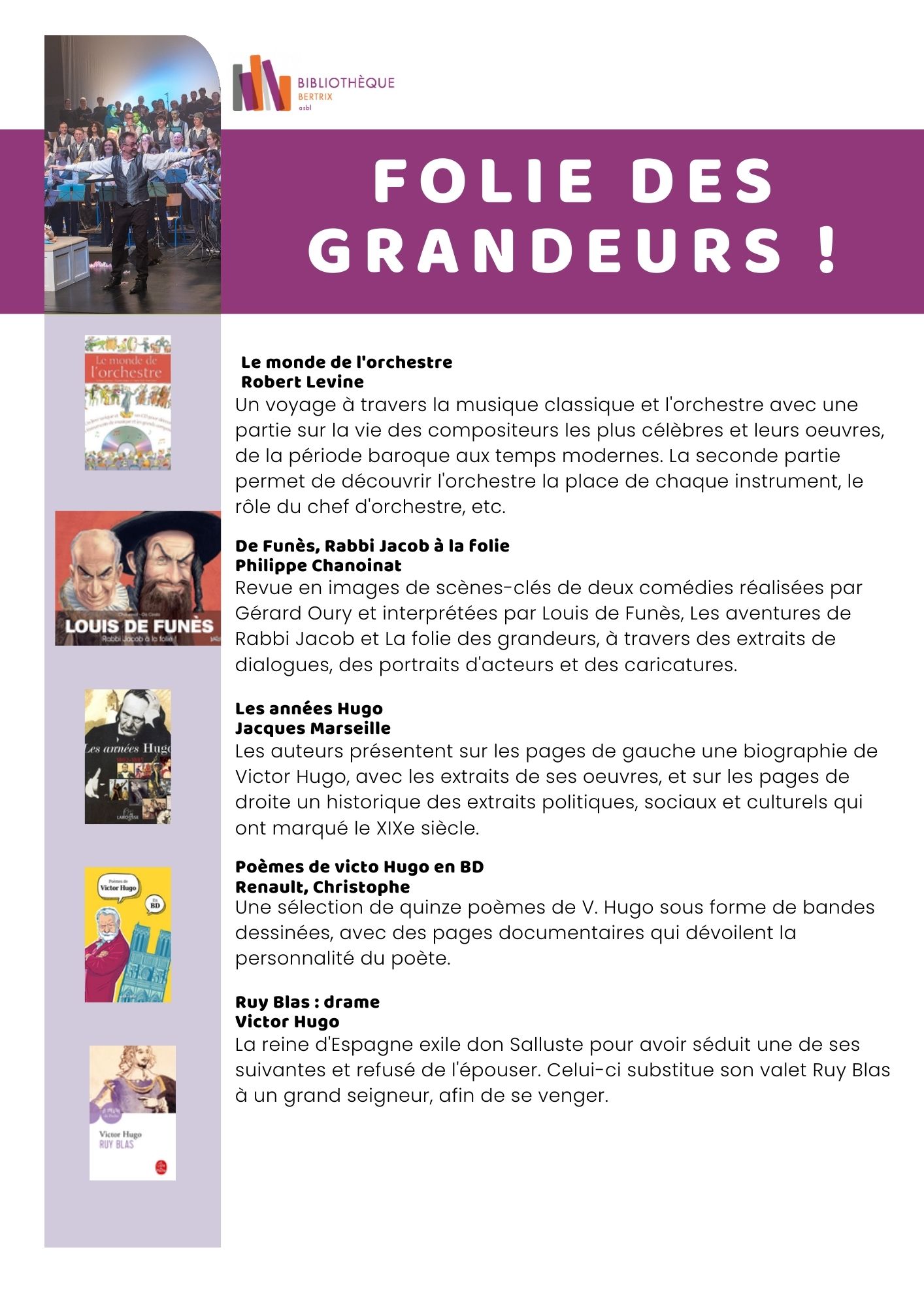Découvrez la sélection de livres en lien avec cette programmation, proposée par la Bibliothèque publique de Bertrix